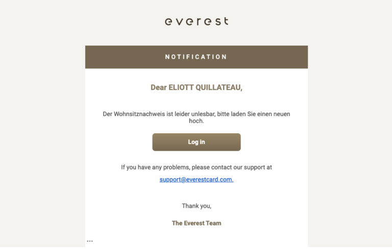 Wenn Sie bereits über ein genehmigtes Everest-Konto verfügen und gerade versucht haben, Ihr Everest-Konto zu aktualisieren, um Zugang zu allen Funktionen des Geschäftskontos zu erhalten, haben Sie möglicherweise eine E-Mail erhalten, in der Sie darüber informiert werden, dass einige Informationen fehlen oder präzisiert werden müssen.