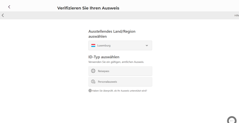 Um Ihre Identität zu überprüfen, müssen Sie zunächst einen gültigen amtlichen Lichtbildausweis vorlegen. Wählen Sie dann das ausstellende Land und die Art des Dokuments aus.