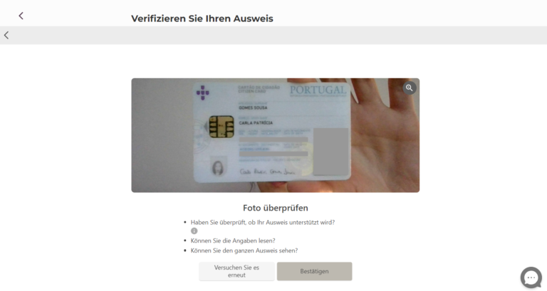 Wir werden Ihr Ausweisdokument bearbeiten, während Sie den Rest des Prozesses abwickeln.