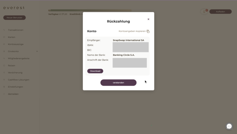 Wenn Sie über ein von Everest genehmigtes Kreditlimit verfügen, erhalten Sie die Abrechnung ebenfalls am Ende des Monats. Sie können die Abrechnung innerhalb der nächsten 5 Tage nach Erhalt begleichen oder die Zahlung verschieben, wenn Sie sie am Ende des Zeitraums nicht vollständig begleichen können.