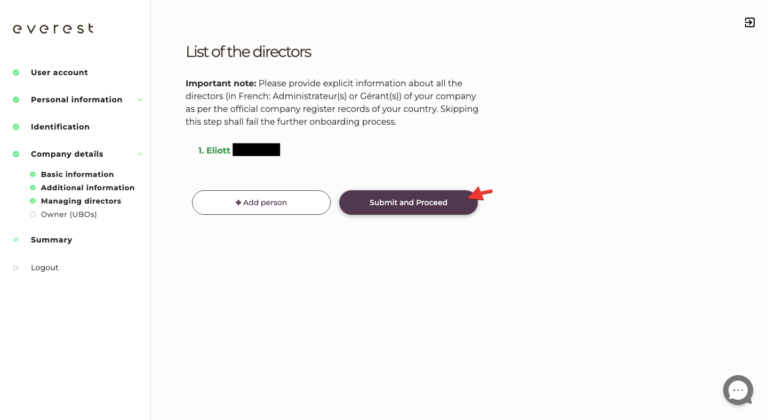 Once all your directors’ information have been rightfully modified, click on the “Submit and Proceed” button, then click on the “Summary” tab.