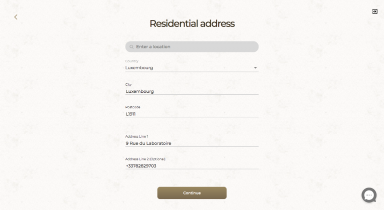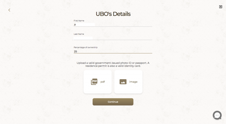 To complete the information on the ultimate beneficial owners, we need to obtain their residential address. Click on “Continue” to confirm.