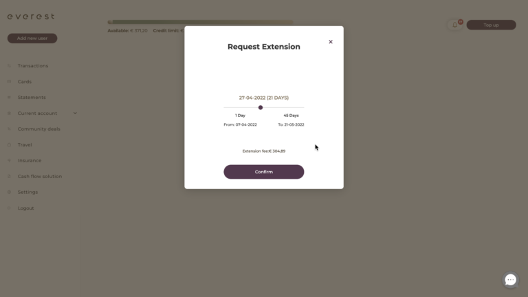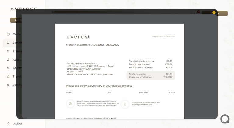 If you have a credit limit approved by everest, you will also receive the monthly statement at the end of the month. You can pay the statement in the next 5 days after receiving it or extend the payment if you cannot pay it fully at the end of the period.