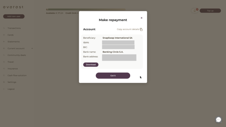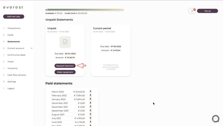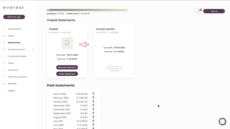 In your dashboard, you can see all the statements linked to your account, in order to keep track of the expenses month by month. Even if you don’t have a credit limit, you can top up your account, use the funds to make your expenses, and you will receive the statement at the end of the period.