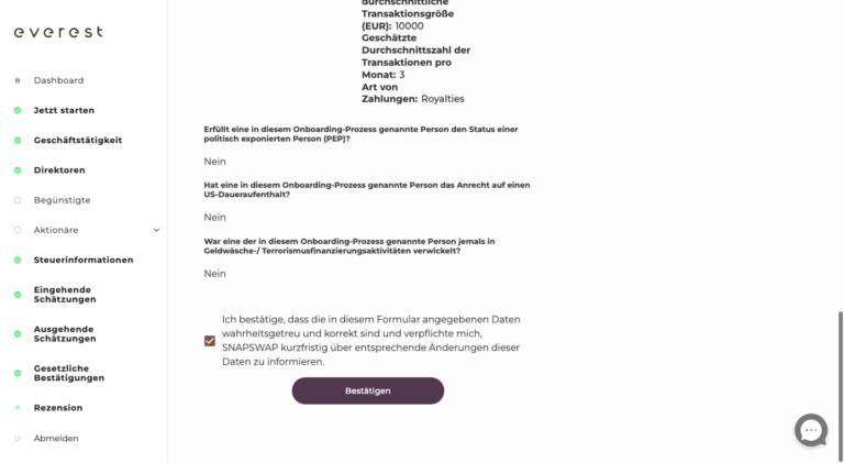 Klicken Sie auf „Überprüfung“, überprüfen Sie die Informationen und klicken Sie dann auf „Bestätigen“ am unteren Rand des Bildschirms.