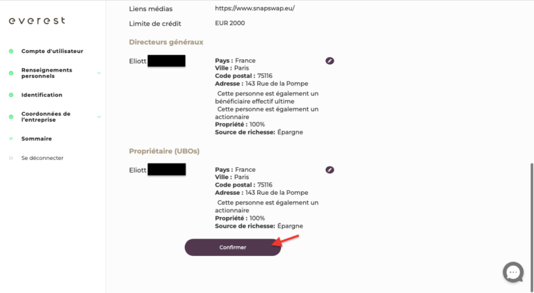 Überprüfen Sie auf der Seite „Zusammenfassung“, ob alle Informationen korrekt sind und aktualisiert wurden, und klicken Sie dann auf „Bestätigen“ am unteren Rand des Bildschirms.