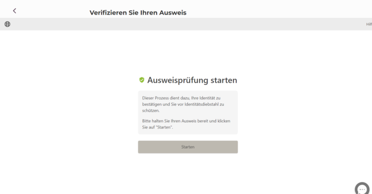 Aus Sicherheitsgründen bitten wir Sie, eine Identitätsüberprüfung durchzuführen. Klicken Sie auf den Button „Start“, um den Vorgang zu beginnen.