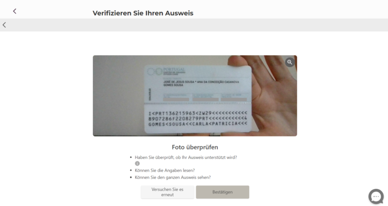 Wir werden Ihr Ausweisdokument bearbeiten, während Sie den Rest des Prozesses abwickeln.
