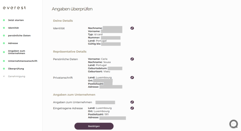 Überprüfen Sie bitte alle Angaben und klicken Sie auf „Bestätigen“.
