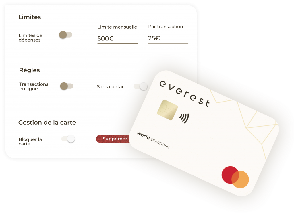 - Dites adieu aux notes de frais, aux reçus oubliés ou à l'utilisation de cartes personnelles pour vos dépenses professionnelles! Grâce à everest, toutes vos dépenses sont réunies dans un seul compte.