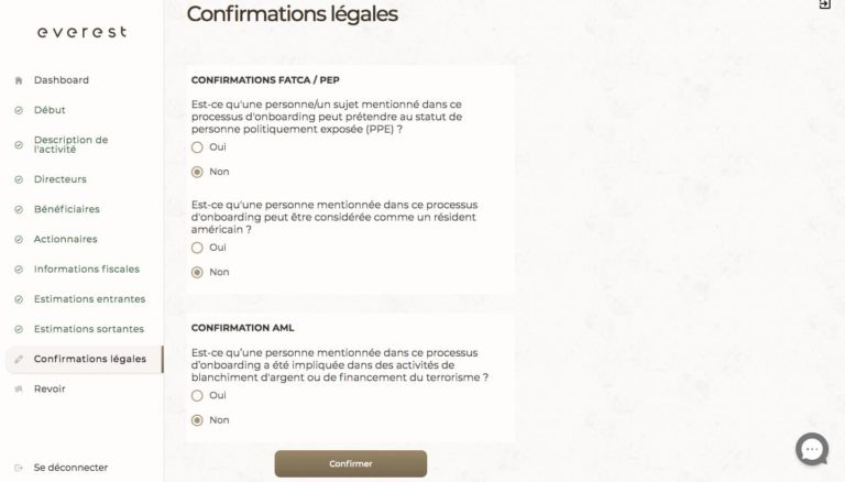 Ensuite, veuillez renseigner les confirmations légales en choisissant l’option correspondante.