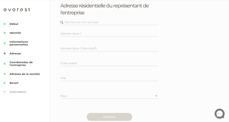 La prochaine étape consiste à entrer les données personnelles de votre représentant pour qu’il puisse utiliser Everest en votre nom.