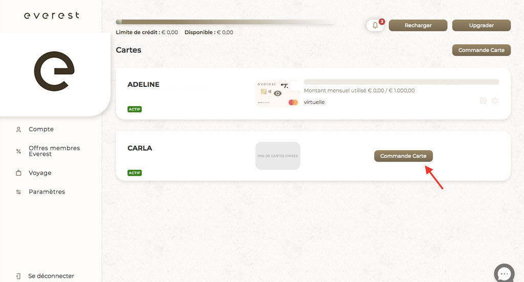 Comment inviter un nouvel utilisateur sur everest et commander la carte ?