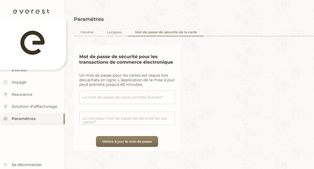 Pour garantir la sécurité de vos paiements en ligne, il est nécessaire de créer un mot de passe de sécurité.