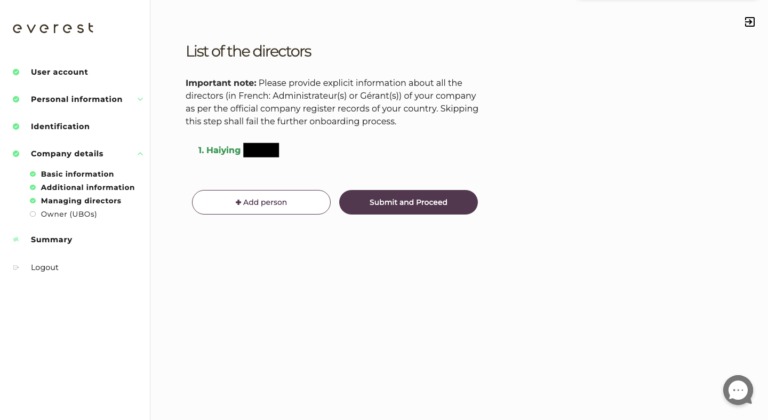 Once all your directors’ information have been rightfully modified, click on the “Submit and Proceed” button, then click on the “Summary” tab.