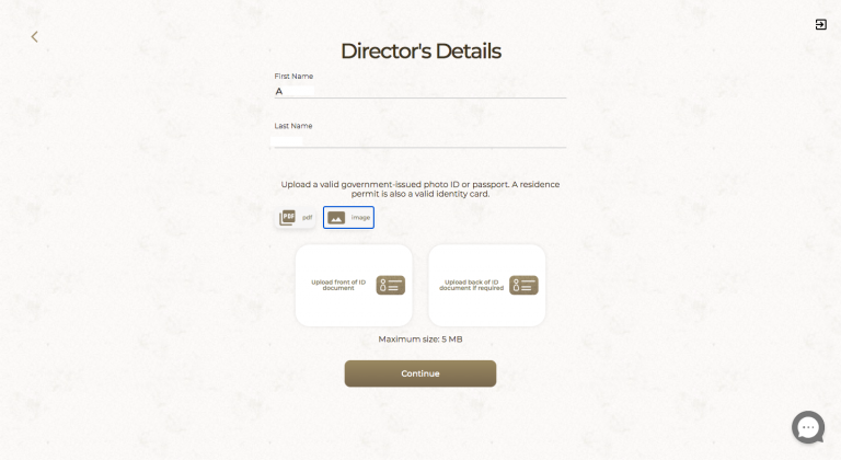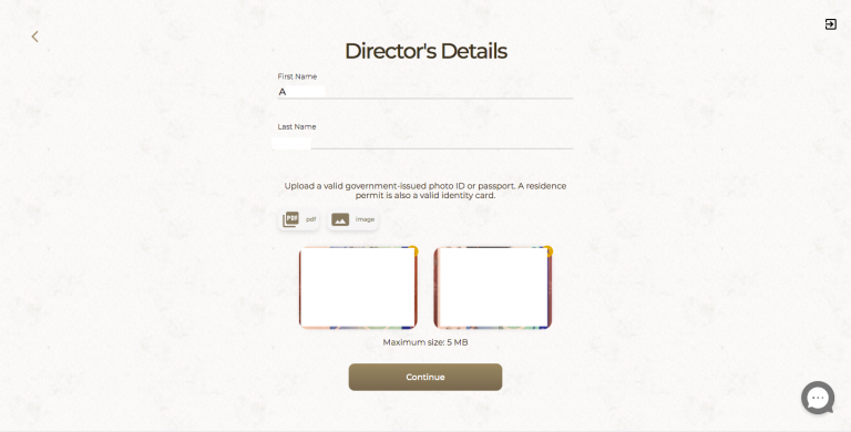 Then, we need to check the identity of the company’s directors. Fill in the first name and the last name.