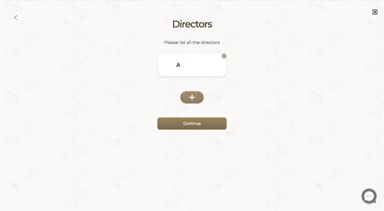 Several directors may be added during this step. Please click on “Continue” to confirm.